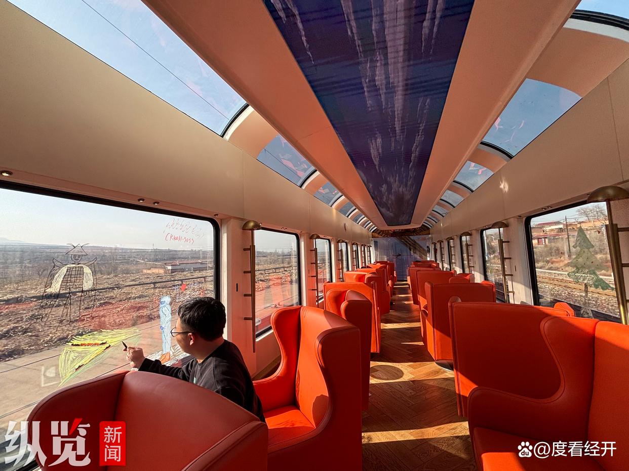超大观景窗、侧顶天窗、顶部LED天幕……坐在观光车厢,超广角视野,将沿途的冬季盛景尽收眼底。列车共设有7节主题车厢,包含4节客座车厢、1节主题餐车、1节全景观光车厢及1节多功能娱乐车厢,车厢化身移动文化空间,让游客在火车上就开始旅行,体验具有河北特色的文旅活动。
