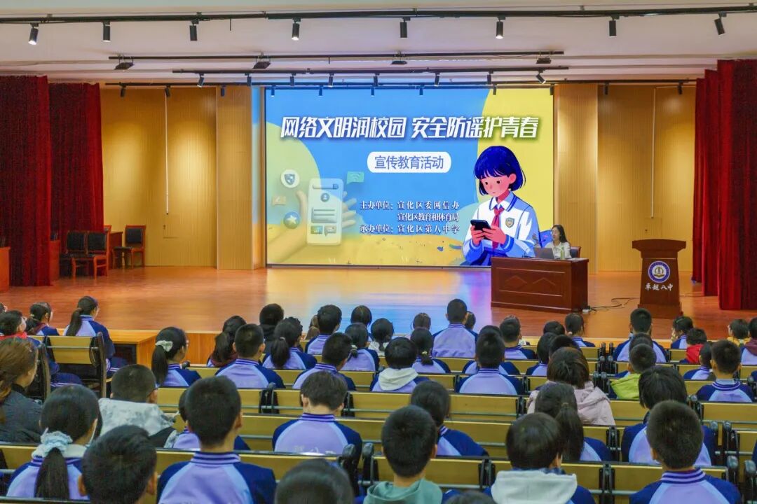 为营造健康清朗的校园网络环境,引导未成年人科学用网、文明上网,11月24日,张家口市宣化区委网信办联合宣化区教体局走进宣化区第八中学,开展“网络文明润校园,安全防谣护青春”主题宣传活动。活动结合《河北省网络生态文明公约》与《未成年人网络保护条例》,通过生动案例、互动体验与深度讲解,将网络防沉迷、反诈防骗、安全防护、文明用网四大核心内容融会贯通,为青少年送上了一场寓教于乐的“网络素养提升课”,助力其在数字时代健康成长。