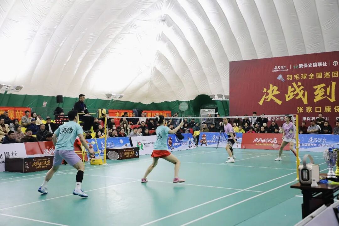 冰韵康保燃情羽动,羽坛国手竞耀康城。1月11日下午,“决战到天亮”羽毛球全国巡回挑战赛张家口康保站在河北省张家口市康保县全民冰雪体育综合体燃情开赛。作为康巴诺尔“冰雪嘉年华·红火过大年”系列活动的重要组成部分,这场集专业性与观赏性于一体的赛事,汇聚国内顶尖羽坛健将,冰雪为笺,赛事为墨,奏响京津冀冬季体育文旅融合发展实践强音。