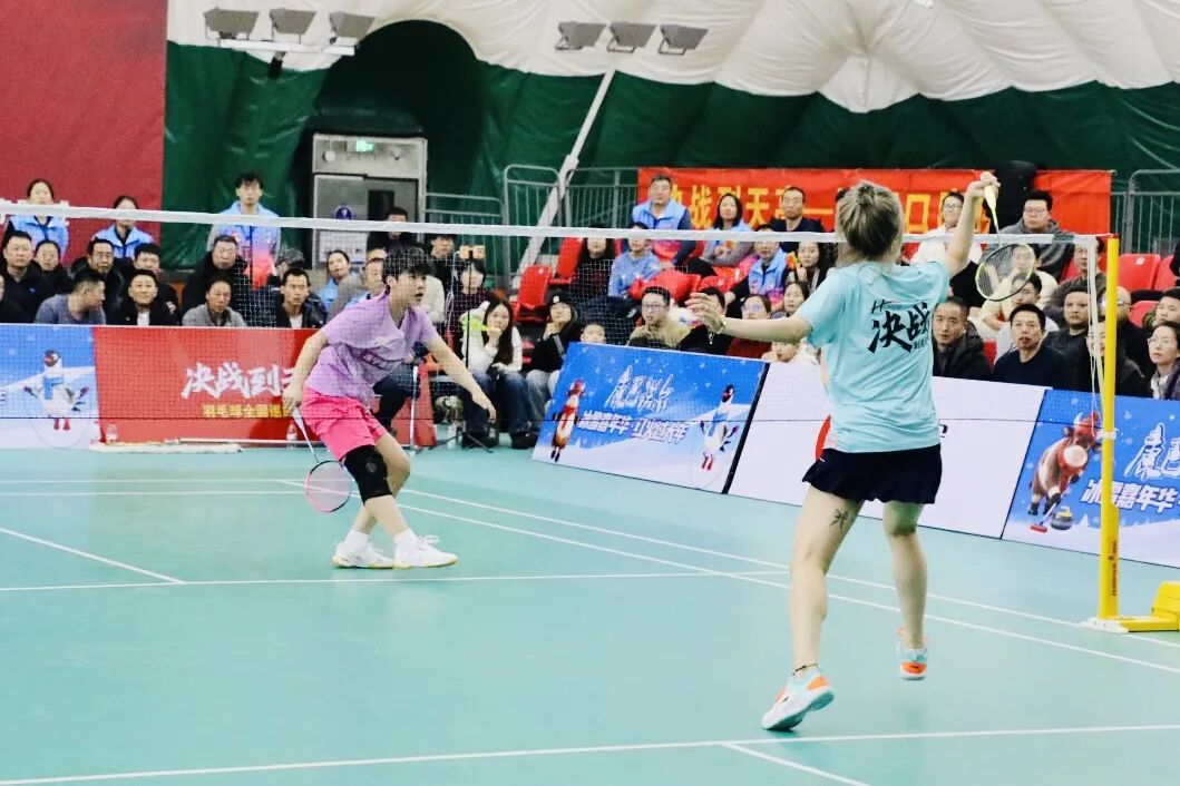 正赛中,七场对决场场惊心,高潮迭起扣人心弦。河北队顶尖羽球选手潘印涵迎战上海队黄佳明,赛场上演龙争虎斗;霍雨杭与张清凡,范俊林与刘涛两组双健将组合在男双赛场展开网前厮杀;全国女单冠军潘羽璐与亚青赛冠军周萌的女单较量,更是将速度与技巧演绎到极致。压轴女双对决中,潘羽璐、安誉搭档对阵林九九、周萌组合,硬核碰撞间将赛事氛围推向顶点。局间抽奖福利不断,球服、球拍与冰雪嘉年华通票轮番送出,线上线下门票的抽取,让赛场内外关注度同步升温。